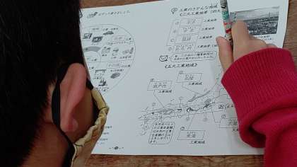 2時間目、5年生が社会科の学習をしています。「日本の工業」について、復習しています。