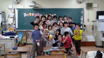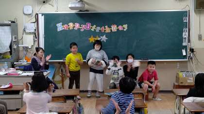 5時間目、3年生が学級活動の時間に「お誕生日会」をしていました。
