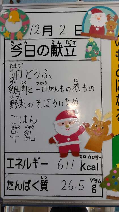 12月2日(水曜)の給食