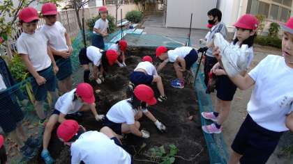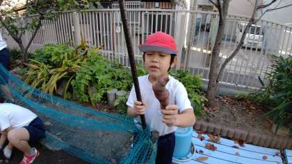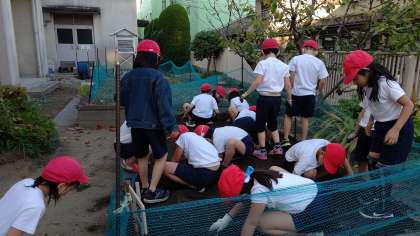 6時間目、2年生が1学期に植えたさつまいもを収穫していました。