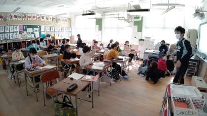 1時間目、4年生が社会科の学習をしています。「昔の大阪市」について学習しています。