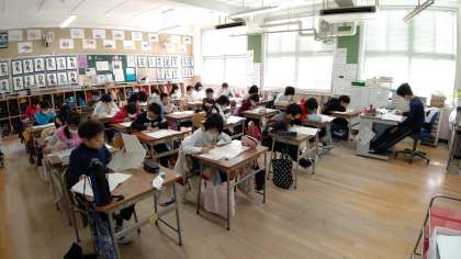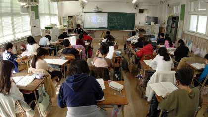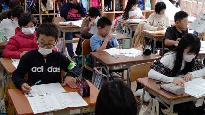 3時間目、4年生が国語の学習をしています。テストに取り組んでいます。