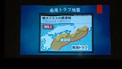 6時間目、5・6年生が講堂で防災・減災について、健康委員会の児童が防災についてのクイズや説明をしています。