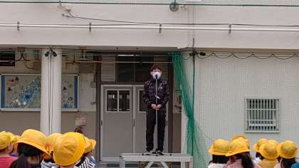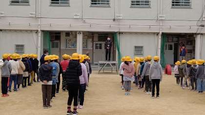 今日は、運動場で全校朝会がありました。「今週は、寒い日 が続くので、風邪をひかないように、規則正しい生活をしましょう」と校長先生からお話がありました。そのあと、中村先生からお話がありました。