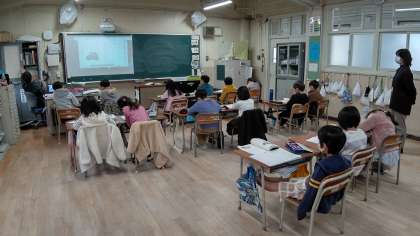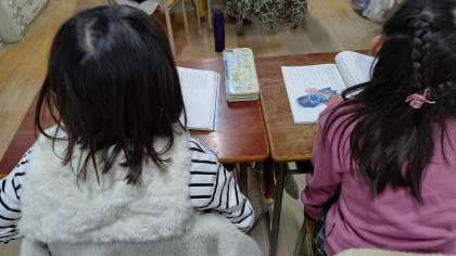 2時間目、2年生が国語の学習をしています。「かさこじぞう」を読んで、感想文を書いています。