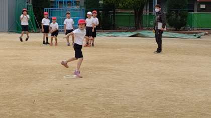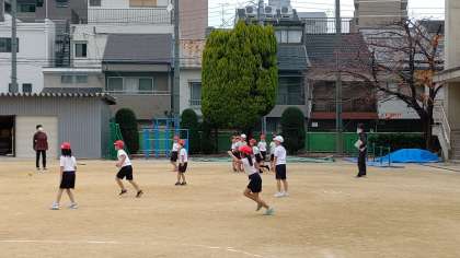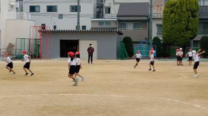 3時間目、2年生が運動場で体育の学習をしています。