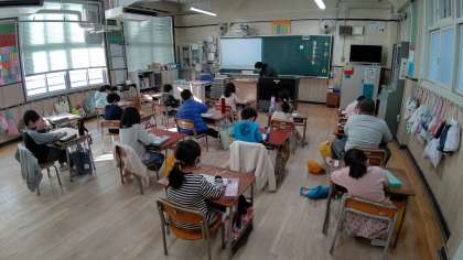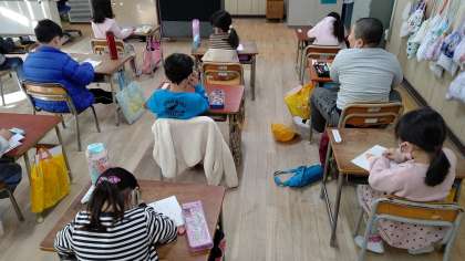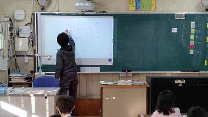 1時間目、1年生が国語の学習をしています。「漢字」のテストをしています。