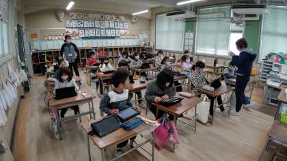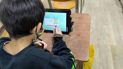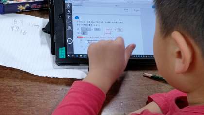 2時間目、3年生が算数の学習をしています。タブレットを使って復習をしています。