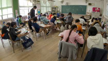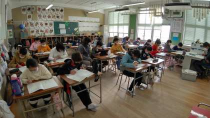 3時間目、5年生が国語の学習をしています。「今まで学習した内容の練習問題」をしています。