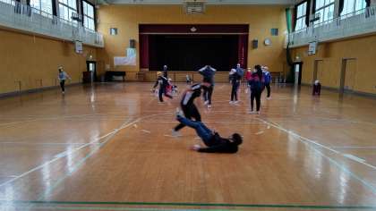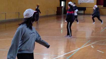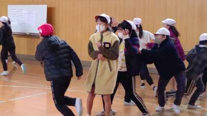 5時間目、6年生が講堂で鬼ごっこをしています。みんなで仲良く楽しんでいます。