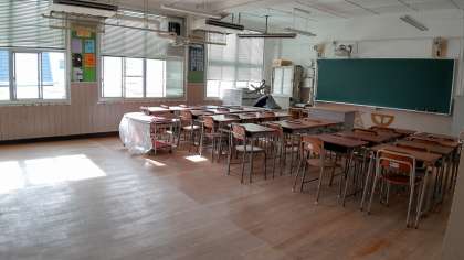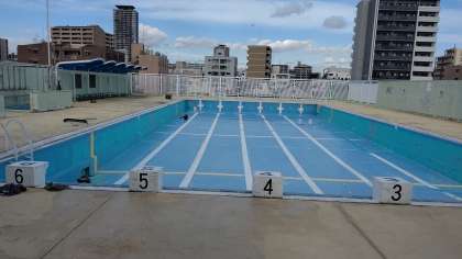 今日は、学習環境の整備を業者の方々がしてくださっています。教室のワックスがけ、換気扇やエアコンのフィルター清掃、夏に備えてプールの底の塗装などをしていただいています。