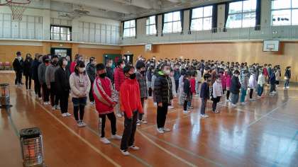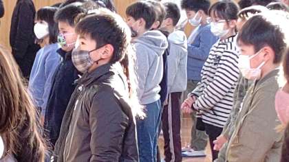 今日は、始業式、4時間授業のあと、給食があります。下校時刻は13時30分の予定です。