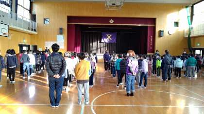 校長先生のお話がありました。放送で大阪市歌、校歌がながされました。