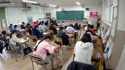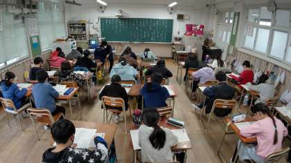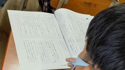2時間目、5年生が国語の学習をしています。6年生と同じように復習問題に取り組んでいます。