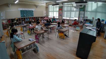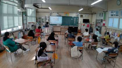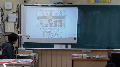 1時間目、生活科の学習をしています。冬休み中に書いた「絵日記」を