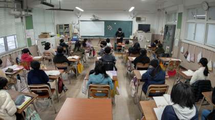 1時間目、4年生が国語の学習をしています。「百人一首の世界」を学習しています。