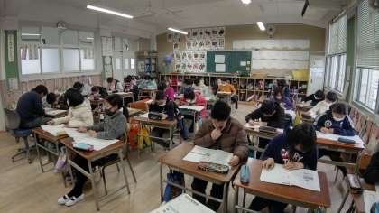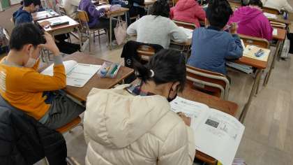 3時間目、5年生が社会科の学習をしています。「大阪市小学校学力経年調査」の社会科問題に取り組んでいます。