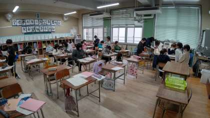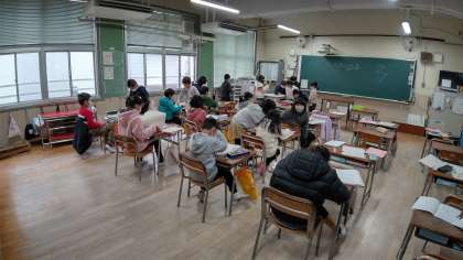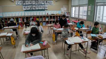 5時間目、3年生が算数の学習をしています。復習プリントの間違い直しをしています。