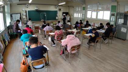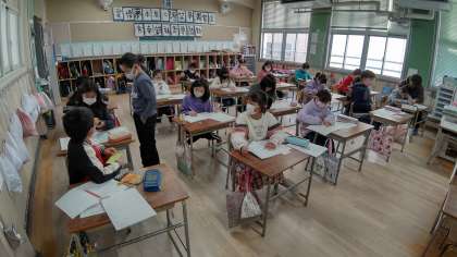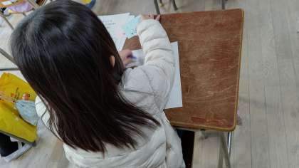 1時間目、3年生が「大阪市小学校学力経年調査」の児童質問紙に答えています。アンケートやお手紙を書いています。