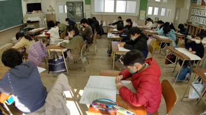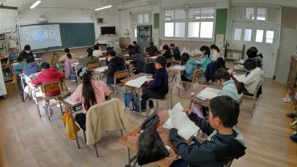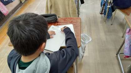2時間目、4年生が算数の学習をしています。「大阪市小学校学力経年調査」の算数問題に取り組んでいます。