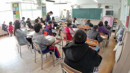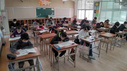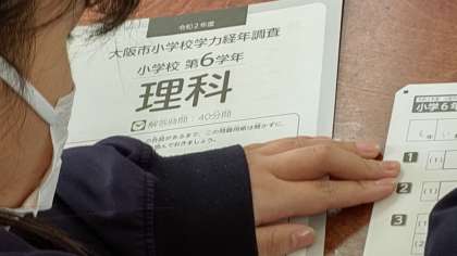 3時間目、6年生が理科の学習をしています。「大阪市小学校学力経年調査」の理科問題に取り組んでいます。