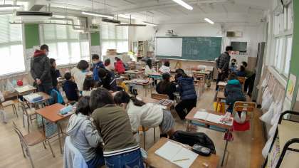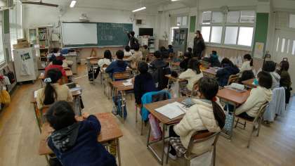 2時間目、4年生が算数の学習をしています。「帯分数と仮分数」について学習しています。