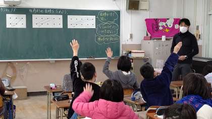 3時間目、5年生が算数の学習をしています。「四角形の面積の求め方」について学習しています。