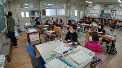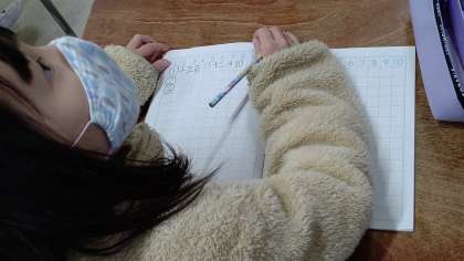 1時間目、2年生が算数の学習をしています。「漢数字を数字」に書きかえています。