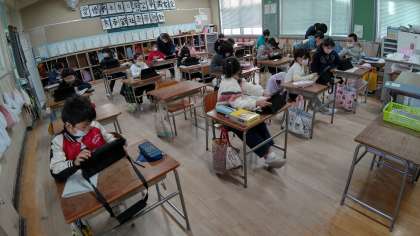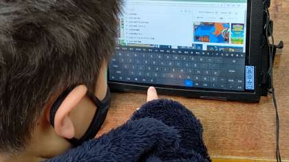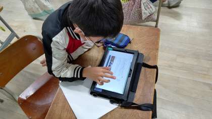 1時間目、3年生が国語の学習をしています。「タブレット」を使って調べています。