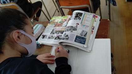 2時間目、6年生が社会科の学習をしています。「戦時中の人びとの生活」を調べています。
