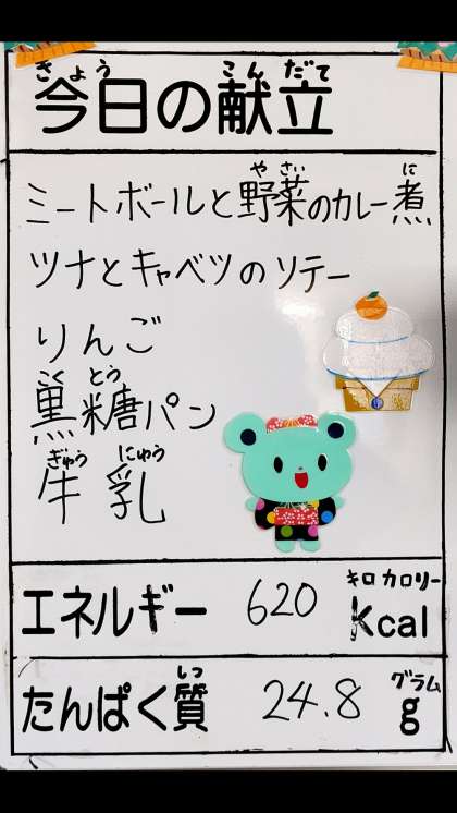 1月20日(水曜)の給食