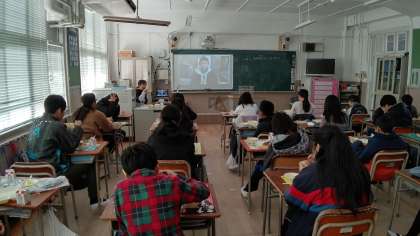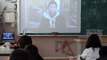 今日は、健康委員会が給食調理員さんに質問をして、答えてもらっているのをビデオで撮影したのを、給食の時間に教室で鑑賞しています。