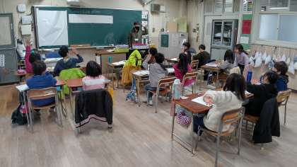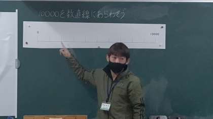 1時間目、2年生が算数の学習をしています。数直線を使って、10000を表しています。