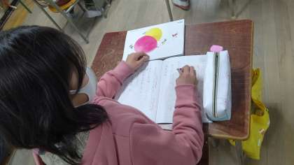 1時間目、3年生が国語の学習をしています。「自分の意見を相手に伝える」文章を書いています。今回は校長先生に伝える文章を書いています。