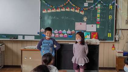 1年生が、朝の会をしています。