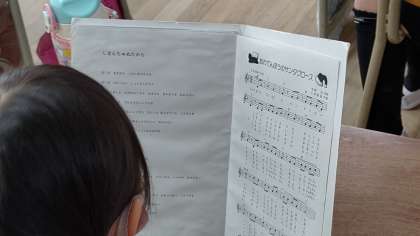 朝の歌「しまんちゅぬたから」を歌っています。