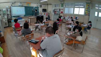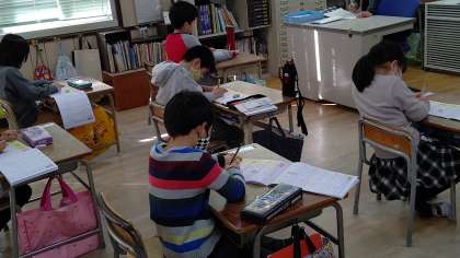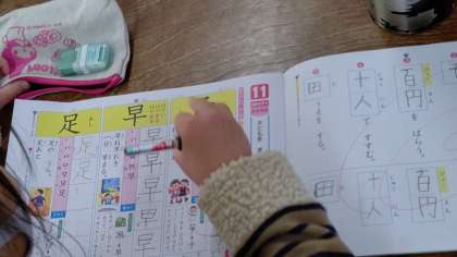 1時間目、1年生が国語の学習をしています。漢字「足」の練習をしています。
