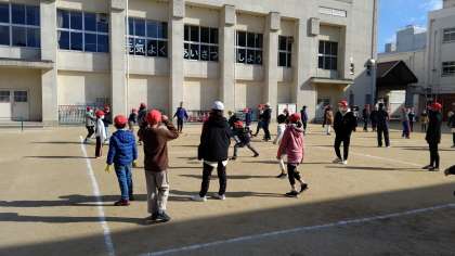 5時間目、3年生と6年生が交流活動をしています。運動場で「ドッチボール」をしています。昨日に続いての活動です。寒さに負けず、みんな仲良く楽しんでいます。