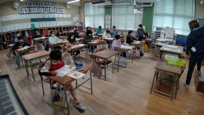 2時間目、3年生が算数の学習をしています。「□を使った式で表そう」を学習しています。