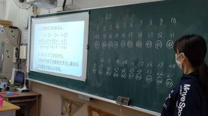 3時間目、6年生が算数の学習をしています。「数学者ガウスの法則」について学習をしています。1から40までの数を足すといくつになるかを、一瞬に計算する方法を考えています。