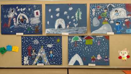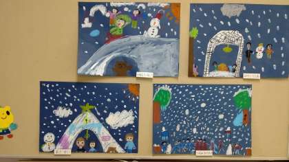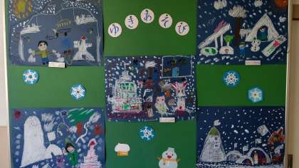 図工の時間に描いた雪遊びの絵が、教室に展示しています。