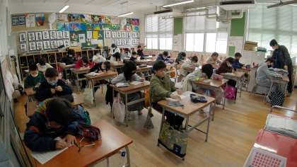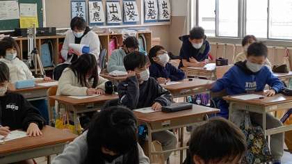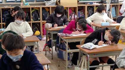 3時間目、4年生が国語の学習をしています。「漢字テスト」をしています。