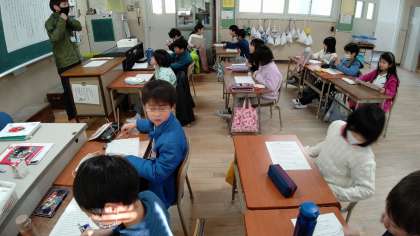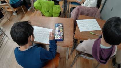 1時間目、2年生が国語の学習をしています。「はたらく自動車」を学習しています。