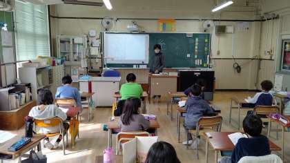 3時間目、1年生が国語の学習をしています。レオ・レオニーさん作、谷川俊太郎訳の「スイミー」を読んでいます。