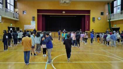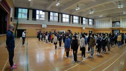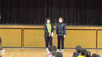 今日は、講堂で全校朝会がありました。校長先生のお話、情報委員会の児童から連絡、河村先生から今月の目標「運動場で元気に遊ぼう」の連絡がありました。