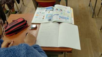 3時間目、6年生が理科の学習をしています。「電気の利用」について学習しています。コンデンサーを学習しています。電気を蓄えて、発光ダイオードの光をつけたり、クルマを走らせています。