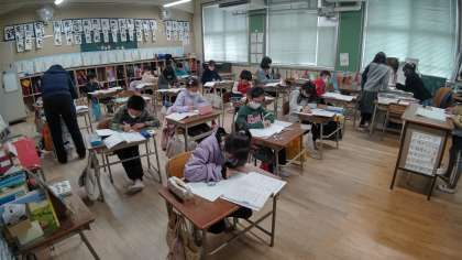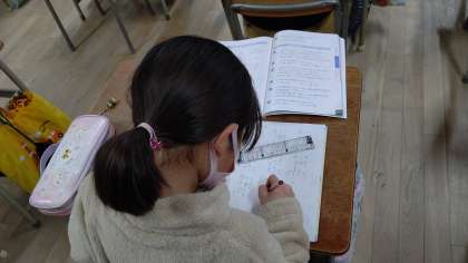 2時間目、3年生が算数の学習をしています。「まとめの問題」を学習しています。