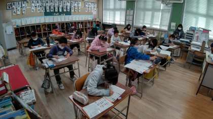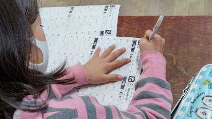 3年生が朝の学習をしています。「漢字プリント」をしています。