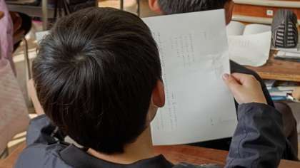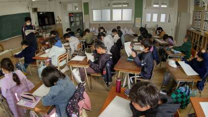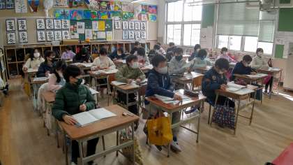 朝の学級活動のあと、1時間目、4年生が国語の学習をしています。杉浦宏さんの「めだか」を読んでいます。