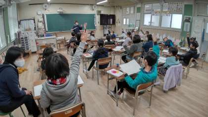 2時間目、3年生が国語の学習をしています。茂市久美子さんの「ゆうすげ村の小さな旅館」を学習しています。
